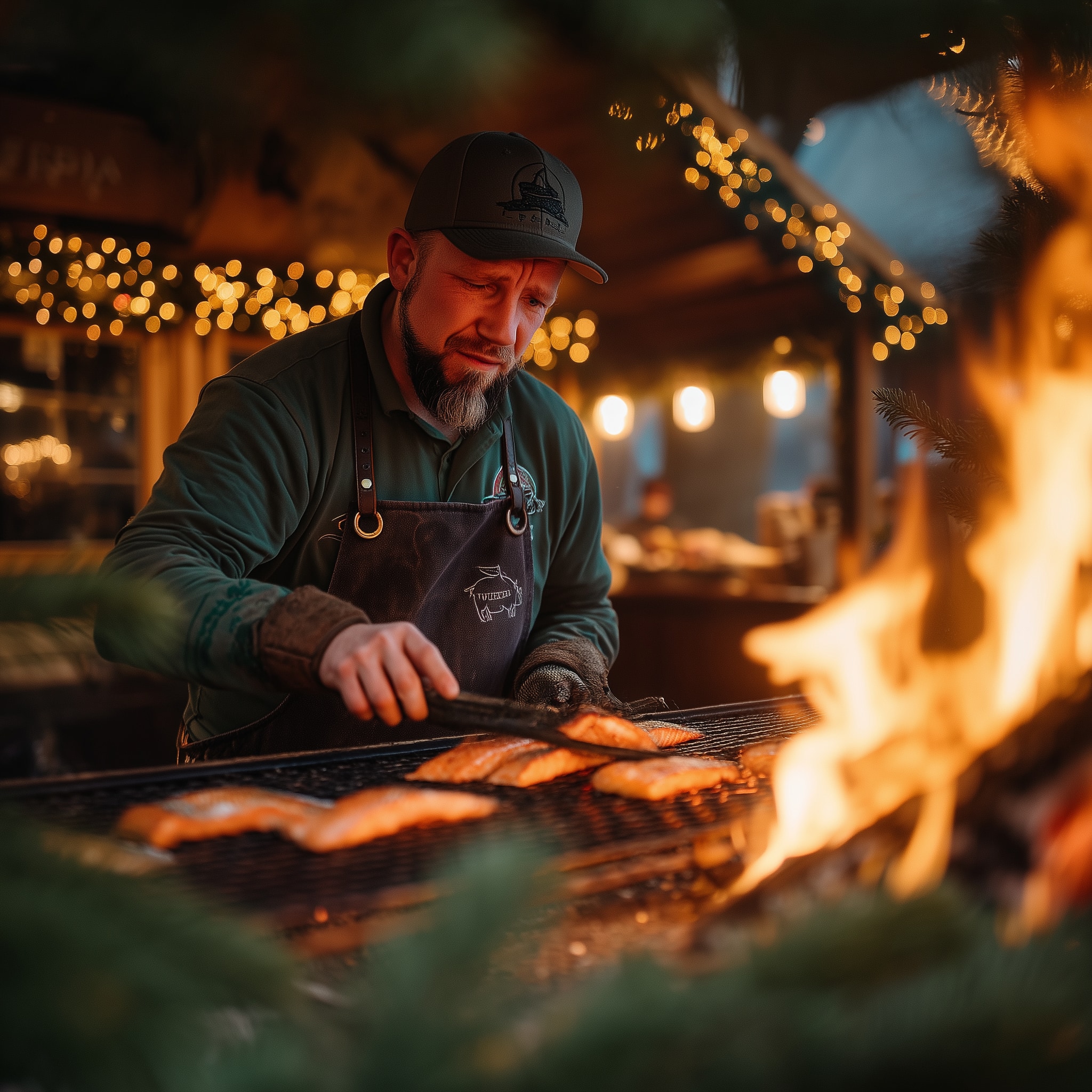 Das Herzstück jeder Feier ist unser winterliches Live-BBQ – direkt am Feuer, in Kontakt mit unseren Pitmastern. Von Vorspeisen über Hauptgänge bis hin zum Dessert wird alles frisch zubereitet.